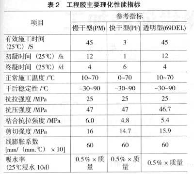 二、 工程膠特點與指標