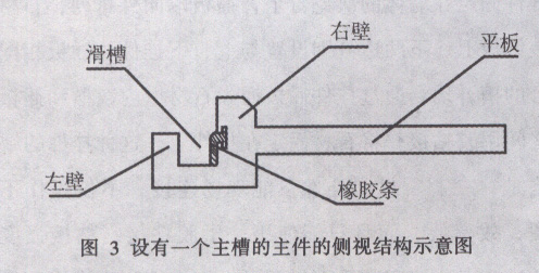 主件與副件在滑槽內為滑動配合,槽內設有貼在側壁(一般在主件的右壁)上的橡膠