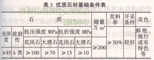 但這并不是絕對(duì)的,任何一種花色由于其或有特殊的花紋或相當(dāng)純凈或當(dāng)前流行等,都可能有名品產(chǎn)生,所以花色等級(jí)只能作為參考,不能做為優(yōu)質(zhì)標(biāo)準(zhǔn)。以上各項(xiàng)做為優(yōu)質(zhì)石材http://www.stonebuy.com/的基礎(chǔ)條件的要求。(見表3)
