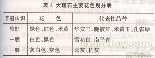 大理石:綠色—紅色—米黃色—黑色—白色—灰色(見表2)