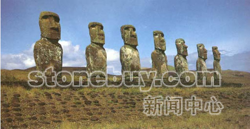 石雕,高4-5米,最高的高9.8米,約公元600-1680年。復(fù)活節(jié)島是南太平洋上一個孤立的小島,因考古學(xué)家是在1722年的復(fù)活節(jié)發(fā)現(xiàn)它的,故而得名。這些雕像都是用整塊石頭雕刻而成,一般高4-5米,重約20噸,最高的達(dá)9.8米,重達(dá)90 噸。