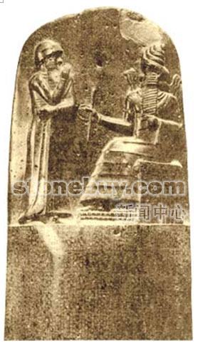 石雕,約公元前1792年-1750年,高約71厘米,石碑全長213厘米,現(xiàn)收藏于巴黎盧浮宮?!皾h謨拉比法典”是世界上所發(fā)現(xiàn)的最早的成文的法律條文,是人們研究古代巴比倫經(jīng)濟制度與社會法治制度的極其重要的文物;同時,它還是古代巴比倫藝術(shù)的代表,尤其因為古巴比倫王國流傳下來的藝術(shù)品十分罕見,所以這個石碑就更加顯得格外珍貴,石碑的雕刻比較精細(xì),表面高度磨光。石碑上刻滿了楔形文字,全文280條,對刑事、民事、貿(mào)易http://www.stonebuy.com/trade/、婚姻、繼承、審判制度等都作了詳細(xì)的規(guī)定。法典的上部是巴比倫人的太陽神沙瑪什向漢謨拉比國王授予法典的浮雕。太陽神形體高大,胡須編成整齊的須辮,頭戴螺旋型寶冠,右肩袒露,身披長袍,正襟危坐,正在授予漢謨拉比象征權(quán)利的魔標(biāo)和魔環(huán);漢謨拉比頭戴傳統(tǒng)的王冠,神情肅穆,舉手宣誓。太陽神的寶座很象古巴比倫的塔寺,表示上面所坐的是最高的神。