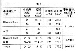 該石材http://www.stonebuy.com/礦山生產(chǎn)的是顏色為淺紅褐色的中等至粗粒結構的斑狀微密花崗正長巖,類似美國達科他州的馬禾卡尼花崗石儲量為88.7萬立方米。這種石材http://www.stonebuy.com/是很好的建筑裝飾材料,需求量與日俱增。為了提高產(chǎn)量,采用Pellegrini TD-65S型金剛石串珠繩鋸進行開采。對這種石材http://www.stonebuy.com/的礦物學和巖石學以及鋸切效果分析,其可鋸性為Ⅲ級。在開采過程中采取水平和垂直鋸切方式分離200~760立方米大小的荒料塊體,然后用垂直鋸切方式鋸切成140~180cm厚的板塊。開采工作面的取向至關重要,最好是平行于裂隙鋸切,這樣可以提高荒料成材率。該石材http://www.stonebuy.com/礦山使用的是Dianant Boart公司的金剛石串珠繩,鋸切時的線速度為25m/s,平均鋸切率為2.41平方米/米。為了對比鋸切效果,試用了Dianant Boart公司的兩種金剛石串珠繩和Tyrolit公司的一種金剛石串珠繩,試用結果見表2.www.stonebuy.com/news