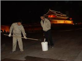 隨著2008年北京奧運會的腳步日益臨近,奧運會的各項準備工作也正在如火如荼的進行。作為市中心的天安門廣場也將迎來世界各國的游人,因此天安門廣場的環(huán)境衛(wèi)生就顯得格外重要。但是每年的黃金周時間,天安門廣場在接待眾多觀光旅游者的同時,卻遭受了雜質(zhì)污染,尤其是口香糖污染,已經(jīng)嚴重影響到了它的壯麗、美觀,讓美麗光潔的花崗巖地面變得污漬斑斑。