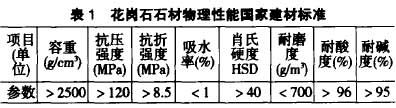 表1 花崗石石材http://www.stonebuy.com/物理性能建材標準