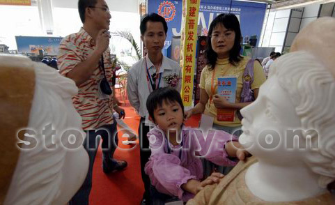 二十一日,第四屆中國http://www.stonebuy.com(云浮)國際石材http://www.stonebuy.com/科技展覽會在廣東云浮國際石材http://www.stonebuy.com/城新會展中心隆重開幕。栩栩如生的人像石雕不僅吸引了大人來觀賞,小朋友也好奇地伸手去感受石像的魅力。