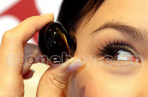 模特展示一顆212.76卡拉巨型貓眼亞歷山大石。此為拍賣史上最大貓眼亞歷山大石,估價為785萬港元-1200萬港元。該石在不同環境的燈光照射下,色彩光芒交錯變幻。在黃燈照耀下。呈現出紅色光芒;而在白燈照耀下,則會變成綠色光芒。
