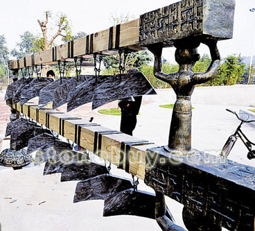 記者在公園看到,首先落戶的編磬雕塑正在安裝(如圖)。工作人員介紹,這組編磬由大理石制成,不同的石磬會(huì)發(fā)出不同的樂(lè)音。市民可借助橡膠錘子演奏音樂(lè)。