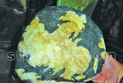 這塊奇石有足球大小,呈扁平狀。只見青黑色的石頭表面,一幅黃白色的“中國http://www.stonebuy.com地圖”活靈活現。對照中國http://www.stonebuy.com地圖發現,我國寶島臺灣、海南島、東三省、渤海灣、膠東半島、大西北等區域,都能在奇石圖案中找到。www.stonebuy.com