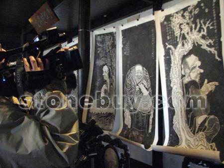 據(jù)西泠印社文物處王處長介紹,這批石碑是西泠印社社委會今年通過組織和調(diào)研,對社內(nèi)文物進行整理和研究之后發(fā)掘出來的。其中有“古長生庵碑記”、“疏浚西湖碑記”、“重浚西湖并復(fù)柏堂竹閣記”、“乾隆御筆詩文”、“鄭板橋畫竹”、“吳昌碩題羅兩峰畫佛”、“吳昌碩繪達摩坐像”、“岳飛書法”、“乾隆題羅漢圖”、“王震繪吳昌碩題十六應(yīng)真像”等名家碑刻。其數(shù)量之多,價值之高,實屬罕見。