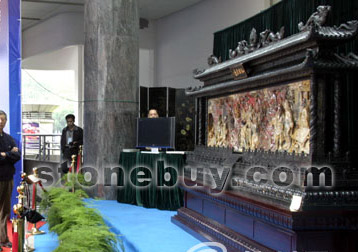 幾年工美展下來,杭城參觀者的素質和鑒賞水平大大提高,價值3000萬的雞血石大屏《桃園結義》,這次擺在了展廳外供大家參觀。www.stonebuy.com
