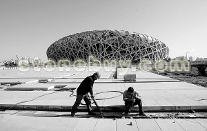 昨日,兩位工人正在“鳥巢”與“水立方”之間的大理石廣場上工作。隨著2008年奧運(yùn)腳步的臨近,北京國家體育場的建設(shè)也熱火朝天,“水立方”和“鳥巢”周邊的大理石鋪設(shè)工作已全面展開。到目前為止,31個奧運(yùn)會比賽場館已有26個竣工,其中22個場館通過了測試賽檢驗;45個獨立訓(xùn)練場館已有30個竣工驗收。除鳥巢外,所有場館都將在今年完工。