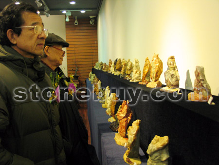 1月12日,石.緣.會----杭州蕭山石雕藝術館藏品展在杭州南山路唐云藝術館展出。杭州蕭山石雕藝術館以印石雕刻而成的石雕藝術珍品,栩栩如生、令人目不暇接。石館主人徐堯林,自幼喜愛書畫、印石和雕刻,對開發、推廣印石藝術情有獨鐘。為了使珍貴的石材http://www.stonebuy.com/能雕出高質量的作品,徐堯林高薪聘請石雕行家一起參與了創作。