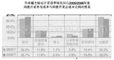 05年和06年度直接開采成本的絕對值基本相等,但06年度總的開采成本比05年度降低了大約25% ,所以引起06年度直接開采成本占開采總成本的比例有所提高。