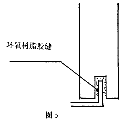 2. 2 將掛鉤用環氧樹脂膠粘接在槽內,花崗石板的自重通過環氧樹脂膠縫傳給掛鉤,將花崗石板支承起來此時花崗石板下部弧形短槽與掛鉤粘接成一個整體,固定在主體結構上不能位移,當建筑物平面內變形時完全靠上部掛鉤在槽內移動調節,此時要對環氧胡旨膠縫構造作出規定并對粘接強度進行驗算(見圖5)。