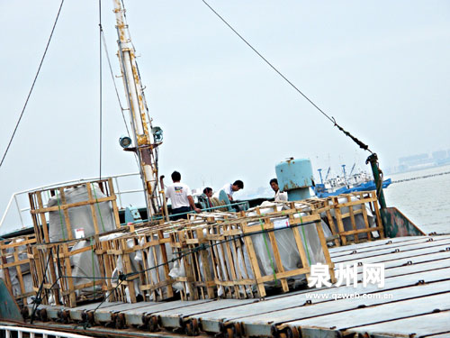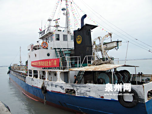 昨天下午近4時,南安http://www.shicai.com.cn/市石井港區(qū)貨運(yùn)碼頭,運(yùn)載鄭成功大型石雕像的“成功17號”貨輪鳴笛起航,人們熱情歡送。
