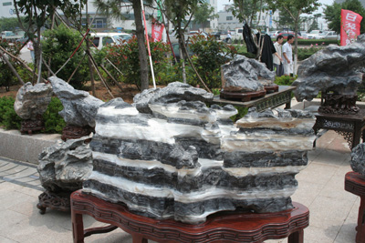 7月12日,由日照日報社舉辦的“2008迎奧運日照市奇石古玩文化藝術品博覽會”在日照市博物館廣場開展,市民與千余件奇石古玩來了場零距離接觸。展會現場氣氛熱烈,2.5噸重的石桌 子、1.8萬元一顆的白菜、50萬的綠彩陶等奇石讓市民大飽眼福。展會持續十天。