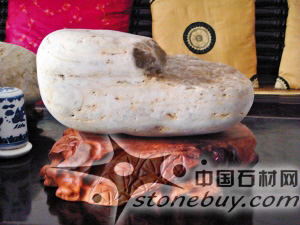 記者現(xiàn)場看到,該奇石為乳白色,長約20厘米,表面圓潤光滑,質(zhì)地很細(xì)。石頭放入水中,立即變?yōu)辄S色,晶瑩剔透,很漂亮。