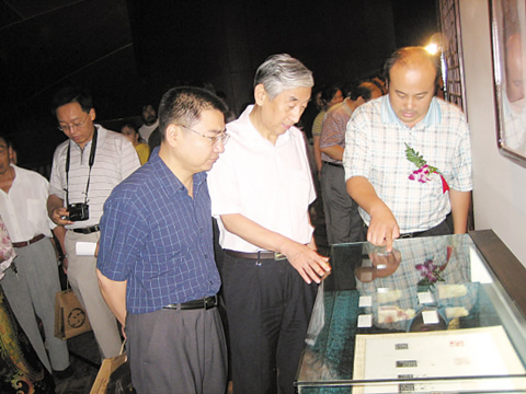 張海(中)等觀看展覽