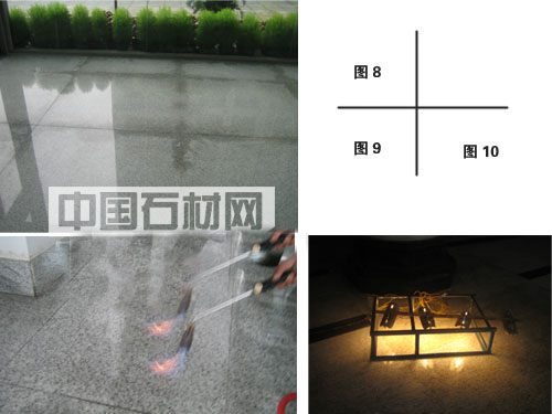 這種方法主要是利用高溫高熱的作用析出堿-硅膠體中的水分,使其變成固態膠體后,再采用石材http://www.stonebuy.com/養護劑進行防水處理。由于這種辦法只是處理了石材http://www.stonebuy.com/的表面部份,所以,當堿-硅膠體變成固態后,又會馬上從石材http://www.stonebuy.com/底部及四周吸收水分,重新形成水斑。常用的器具是太陽燈(如圖9)或噴火器(如圖10)。