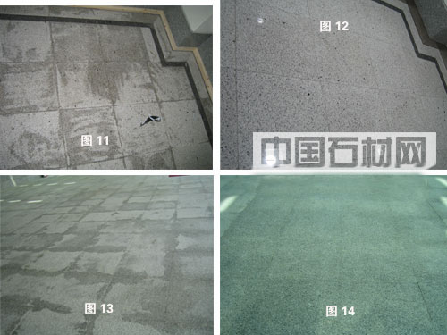 病變情況:石材http://www.stonebuy.com/安裝前已做防護處理,但有部分石材http://www.stonebuy.com/的防護劑涂刷不均勻和漏刷,致使石材http://www.stonebuy.com/產生嚴重的水斑污染,如圖11。