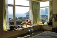 飄窗一般呈矩形或梯形向室外凸起,它三面都裝有玻璃,窗臺高度較低,既有大面積的玻璃采光,又有寬敞的窗臺,在視覺上可以延伸室內空間。