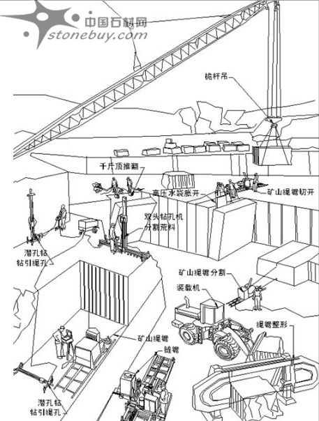 不過隨著石材http://www.stonebuy.com/用超硬合金的研究發(fā)展,目前也出現(xiàn)了許多專門用來開采切割花崗巖的金剛石礦山繩鋸,不少礦山也采用礦山繩鋸來開采花崗巖荒料了。