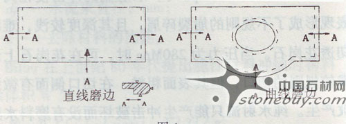 磨邊的方法有手工磨邊和機器磨邊。根據(jù)板材的平面形狀有直線和曲線磨邊。見圖一: