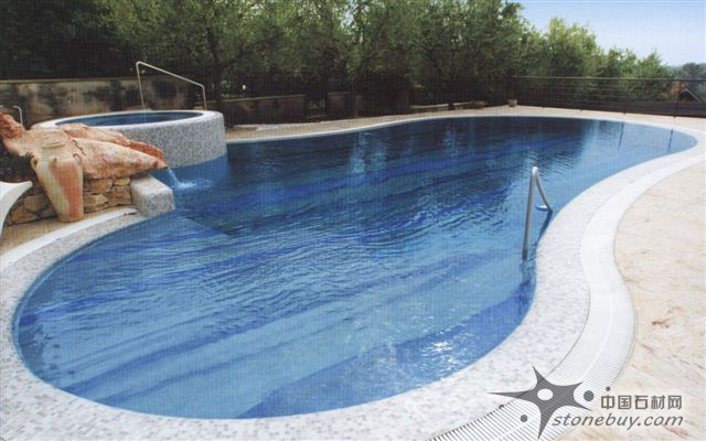 藍(lán)海是環(huán)球石材http://www.stonebuy.com/創(chuàng)意產(chǎn)業(yè)部的特色石材http://www.stonebuy.com/,它的紋路變化序,色彩鮮艷。本案中的藍(lán)海應(yīng)用于別墅的私人泳池池底,透過水面,池底如同海面一樣清新而爽快。目前全世界只有兩個(gè)這樣的私人泳池,一個(gè)是中東某國(guó)王,另一個(gè)是安東里尼的老板。