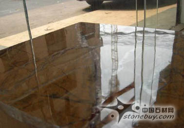 4、拋光:拋光石材http://www.stonebuy.com/必須是徹底干燥的,(干燥方法:使用移動干燥箱進行干燥,干燥器功率在4800瓦左右是最為適合。)使用晶面機功率2HP以上(1500——1800瓦),轉速175---210轉/分鐘,重量45-70公斤晶面機、使用獸毛含量70%的獸毛墊、3M墊、納米墊、等均可使用,配合大理石鏡面復顏霜NO2、2X鏡面鎖亮導入乳Q5進行拋光研磨,拋光后大理石表面光澤度可達最少,90—100度以上。