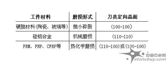 單晶金剛石各向異性,在不同晶面及不同方向上性能差異甚大,切削不同的材料,應有不同的定向(見附表)。