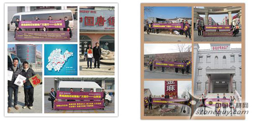 作為本年度規模最大的推廣方案,此次活動自2012年12月14日開始,青島國際石材http://www.stonebuy.com/展項目10名工作人員走遍青島、平度、萊州、招遠、榮城、乳山、五蓮、平邑、泗水、汶上、嘉祥等山東重要石材http://www.stonebuy.com/基地,總推廣路程3300公里,共拜訪2000余家企業http://www.stonebuy.com/enterprise/和十余家石材http://www.stonebuy.com/城。工作人員進行了石材http://www.stonebuy.com/產業資源考察、市場http://www.stonebuy.com/enterprise/FuJian/QuanZhouShi.html信息收集、專業觀眾及買家邀請、客戶信息推廣發布于一體的山東石材http://www.stonebuy.com/基地實地宣傳推廣工作。實地派發了新年掛歷、展會門票、手提袋、宣傳折頁的派發、橫幅懸掛、海報張貼等豐富的資料,據統計,本次推廣共發放石材http://www.stonebuy.com/展精美新年掛歷3000份、展會資料3000余份,并且回收到客戶資料2000余份,獲得了基地企業http://www.stonebuy.com/enterprise/、經銷代理商的熱情反饋和認可,進一步為展會招商招展工作的開展打下堅定的基礎,同時為廣大參展企業http://www.stonebuy.com/enterprise/帶來更多的宣傳服務和品牌推廣價值。