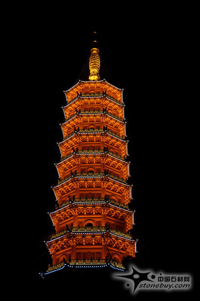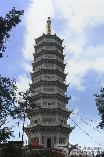 福建http://www.zongyi.com.cn/省沙縣淘金山景區舍利寶塔,塔身通高為71.8米,是目前國內最高的石雕寶塔。寶塔共分九層(不含地宮),內用筒型混凝土結構及預埋干掛式支撐連接,外飾斗拱、回廊、屋檐、欄板等采用石材http://www.stonebuy.com/石雕榫卯結構接合,使塔心內外建筑應力相融一體。