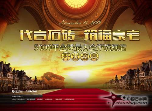 5000平米全球最大會所旗艦店的落成與開業,是卡斯維諾·石磚品牌繼榮獲"中國http://www.stonebuy.com石磚首選品牌"之后的又一重大里程碑,盛事恢宏,大師風采,敬請期待!