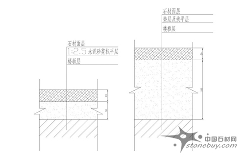二、 試拼:放線后,將石材http://www.stonebuy.com/按照派位圖與石材http://www.stonebuy.com/分格線進(jìn)行試拼。檢查石材http://www.stonebuy.com/的尺寸、圖案、顏色和紋理是與圖紙一致。