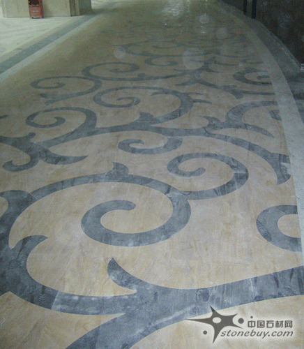三、鋪拼花石材http://www.stonebuy.com/:試拼完后,接下來就是鋪拼花石材http://www.stonebuy.com/。首先拉好安裝起始點的十字控制線,開始安裝石材http://www.stonebuy.com/。