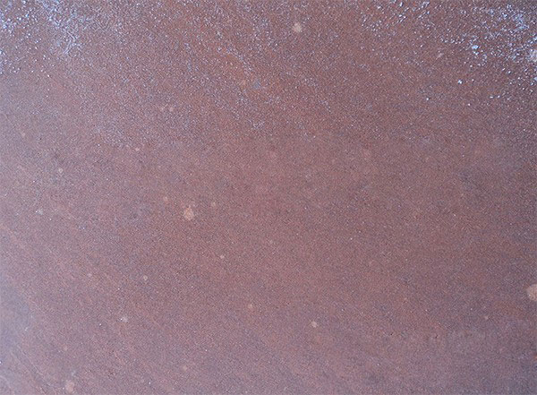山東紫砂巖主要是紫色底帶細微的白色顆粒紋路的砂巖,顏色均勻穩定,色調顯得莊重富貴,紋理和諧,色差不大,其中少部分顏色偏紫紅色或是淺褐色。