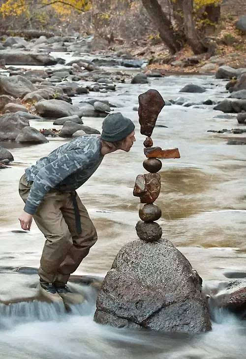 一個周末的下午,他躺在小溪邊玩耍,看著陽光下閃爍的卵石,突然產(chǎn)生了疊石頭的興致,他拿起一塊,再拿起一塊,連他自己都覺得吃驚:“我竟然把奇形怪狀的石頭疊了很高。”