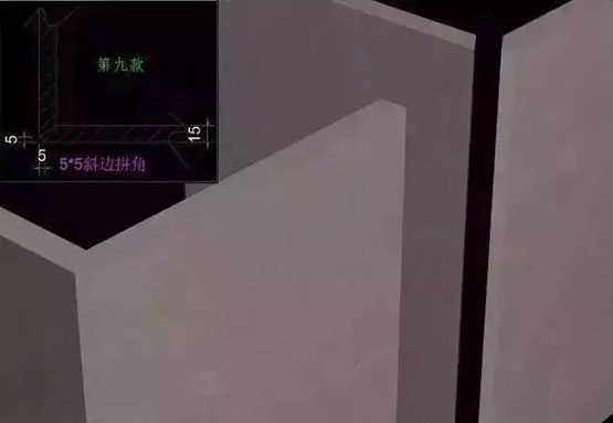 5*5拉槽見光角,一側板面拉5*5見光槽與平板合起來。如果用在墻面轉角部位,從側面看就有一條槽,還有板材需要保持一致的厚度來維持縫隙的大小。多用于設計現代及中式風格。
