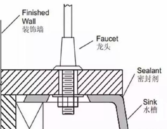 1、洗面盆及洗菜盆洞口距離后檔水≥120mm,留夠安裝龍頭位置,并保證抽拉下水支架的操作空間,水龍頭離水盆的安裝距離盡量靠近;