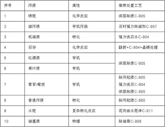 1、花崗巖常見的藥劑及養(yǎng)護(hù)工藝