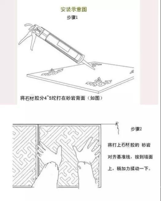 產品http://www.stonebuy.com/sample/安裝為了確保更加牢固和安全要采用小型的自攻形膨脹螺絲來安裝,方法同安裝大型浮雕一樣只不過是所采用的螺絲要小一些。