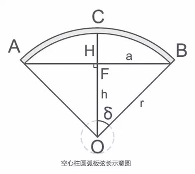 實際運用中,有時還要計算圓弧板的“拱高”。