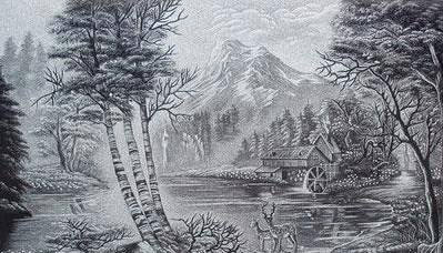 在早年的“針黑白”工藝基礎(chǔ)上發(fā)展起來(lái)的新工藝品。最早的作品是60年代未由惠安藝人創(chuàng)作的,因作品都以照片依據(jù),故稱“影雕”。這種雕件以玉晶湖青石切鋸成平板作為材料,先把表面磨光,利用其經(jīng)琢鑿能顯示白點(diǎn)的特性,以尖細(xì)的工具琢出大小、深淺、疏密不同的微點(diǎn),僅分黑白的不同層次,使圖像顯示出來(lái),不但細(xì)膩逼真,而且獨(dú)具神韻,是石雕向純藝術(shù)化的發(fā)展,為石雕工藝生產(chǎn)開(kāi)辟了新的道路。