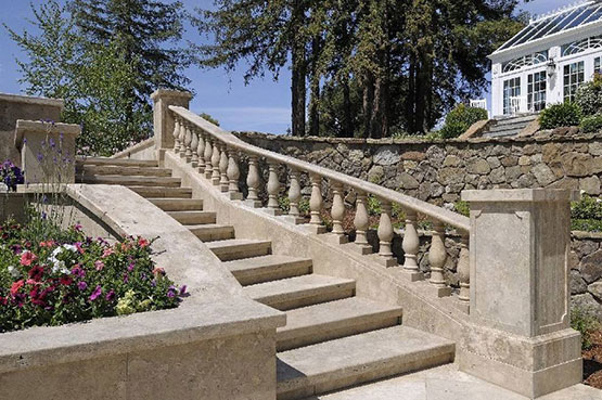 打造臺階石基本步驟:基層處理---彈線---預鋪---鋪設---勾縫