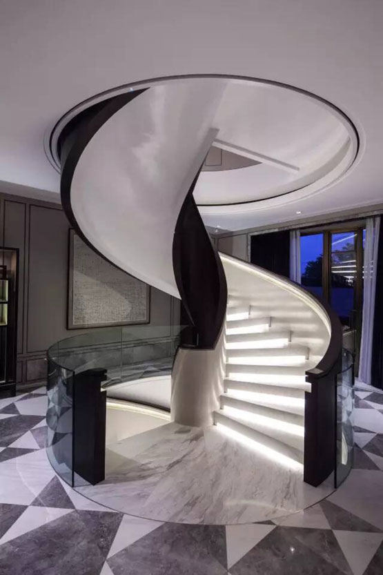 對一個大理石旋轉樓梯的評價人們往往是隨著時間的推移而評價有所不同,從感性的認知出發,原因是初看時往往是首先注重大理石旋轉樓梯的空間彎曲形態、氣度比例協調。其后才著眼于大理石旋轉樓梯所用材料搭配、色澤搭配。最后才去感覺大理石旋轉樓梯的質感和工藝。