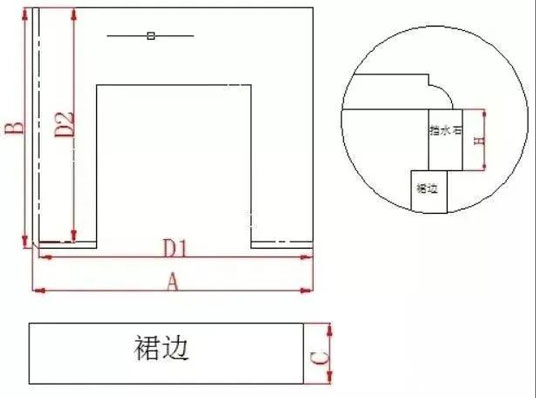 二、 非標窗臺石面積=臺面石實際投影面積+下檔水沿面積 磨邊長度=下擋水沿長度