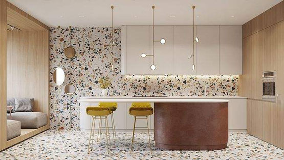 (1)高亮水磨石、表光高亮處理后高亮度達(dá)到70以上、防塵防滑達(dá)到大理石品質(zhì);表面硬度達(dá)到6-8級(jí);可隨意拼接花色、顏色均可自定義配制;