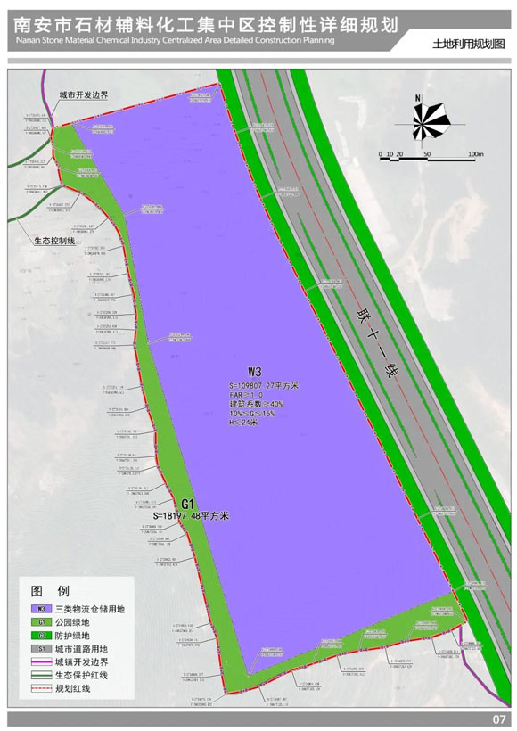 規劃范圍內用地面積12.80公頃,為城市建設用地,主要含10.98公頃的三類物流倉儲用地,1.82公頃的公園綠地。