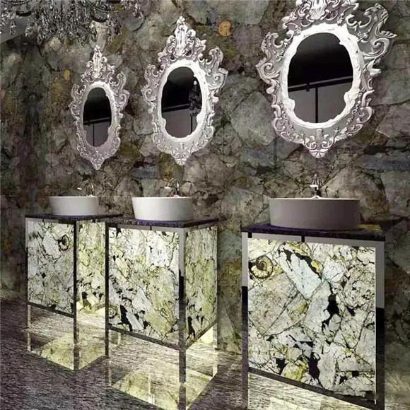 半寶石的材質是稀有獨特的,紋路也是天然獨特的,色彩豐富飽滿,深受人們的喜愛。將其應用在建筑上可以讓整個空間顯得高檔奢華起來,同時也可以彰顯出主人的品味。